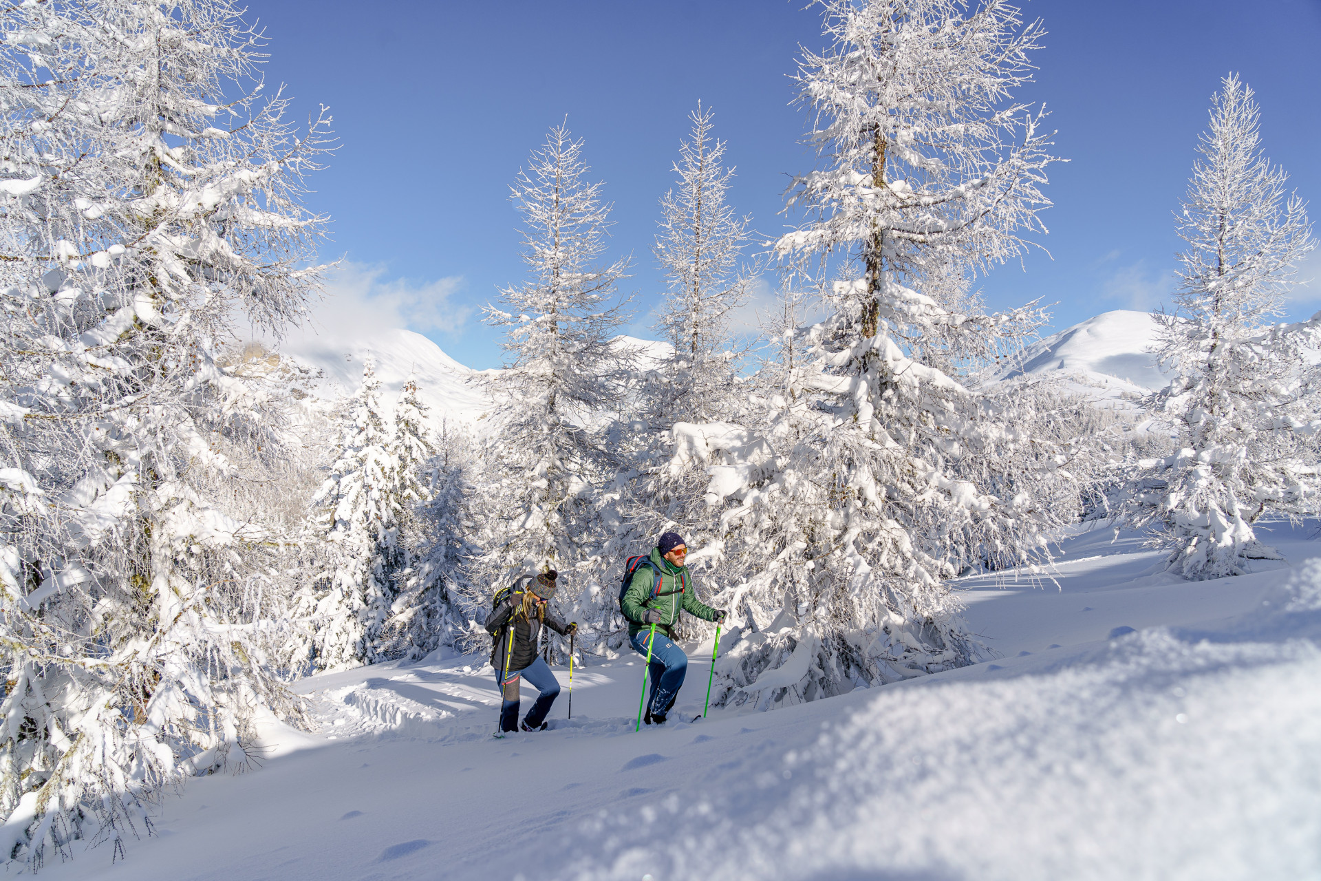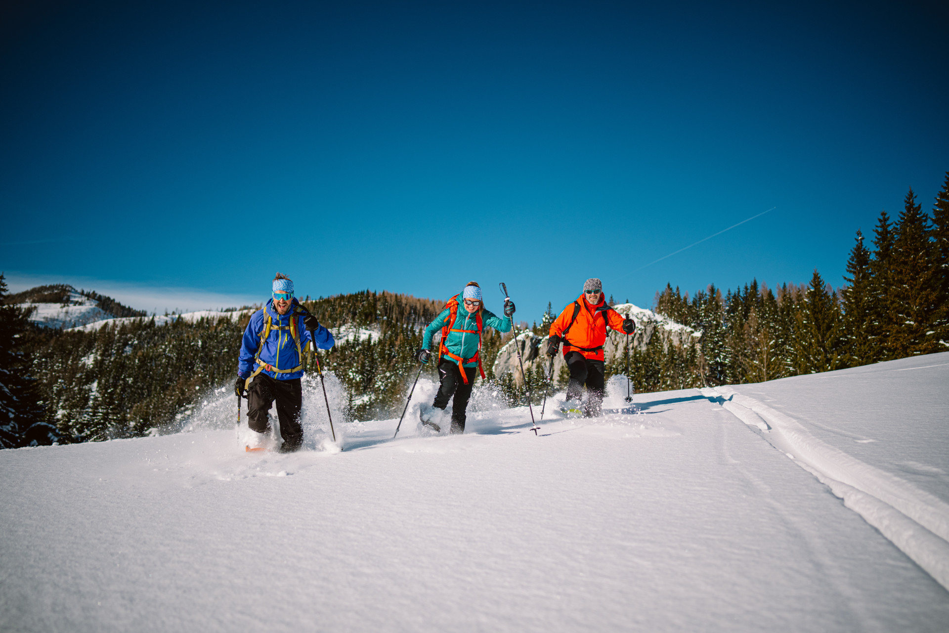 Obwohl Schneeschuhgehen neben den Schneeschuhen kaum spezielle Ausrüstung erfordert, ist es empfehlenswert, sich vorab der gesamten erforderlichen Ausrüstung zu widmen. Das minimiert die Frust-Gefahr und sorgt im Idealfall vom ersten Mal an für viel Spaß. So sollten Schneeschuhe etwa vor dem Kauf ausprobiert werden, denn nicht jeder kommt mit jedem Modell gleich gut zurecht. Auch, dass ihre Auflageflächen, wie bereits erwähnt, nicht zu klein, aber auch nicht zu groß sein sollten, gilt es zu bedenken. Punkto Bekleidung ist man ähnlich angezogen wie auf Skitour bestens gerüstet. Jedenfalls mit dabei müssen ein Erste-Hilfe-Set, ein leichter Biwaksack, eine Stirnlampe, weil die Tage im Winter sehr kurz sind, ein geladenes Smartphone und Kartenmaterial (digital inklusive Offline-Karten und/oder print) sein. Entsprechend gerüstet hat Schneeschuhwandern das Zeug dazu, eine lässige Alternative zu sein, wenn keine Skitouren möglich sind.