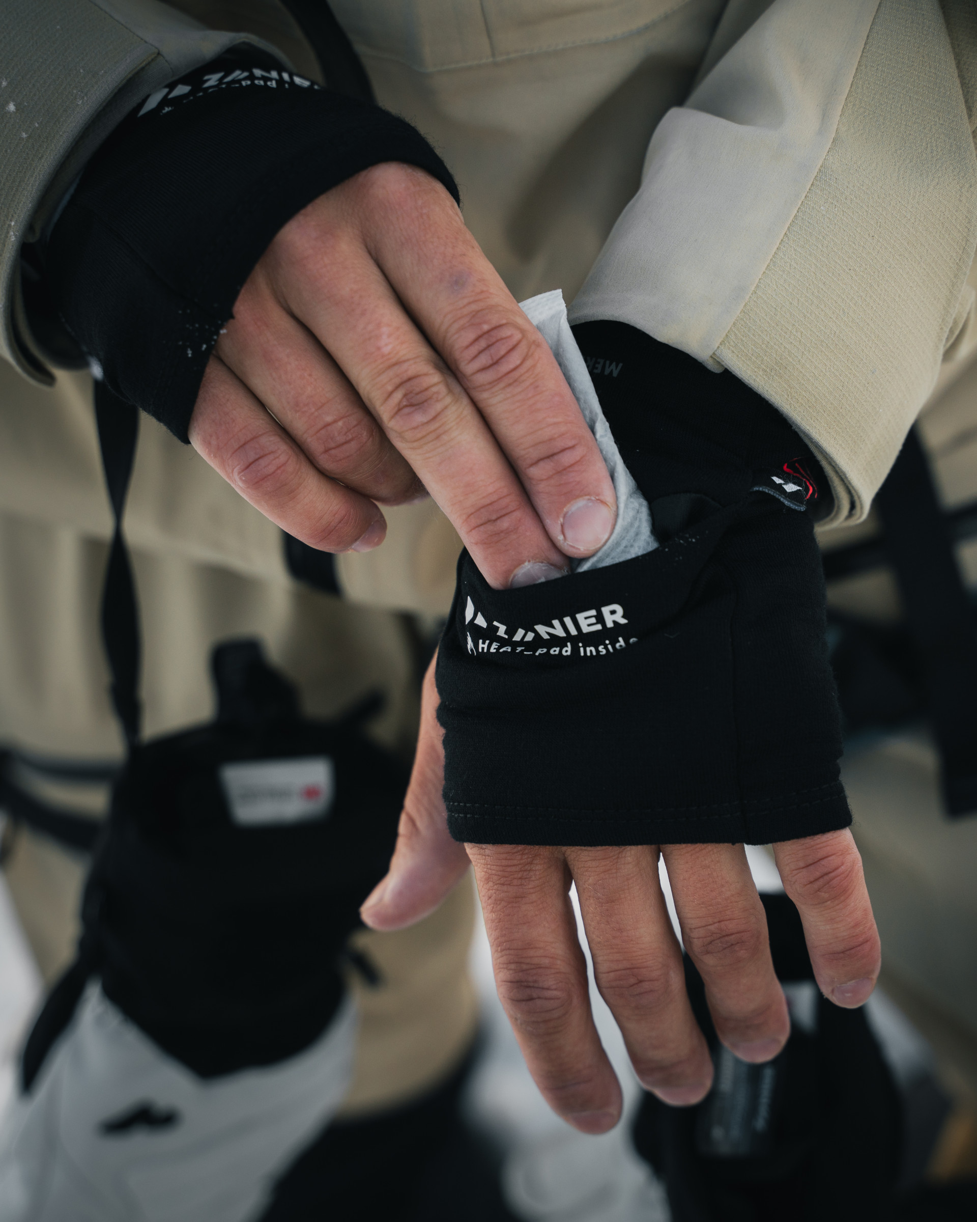 Handschuhe gehören zur Standardausrüstung – um die Hände zu wärmen, aber auch um sie, wenn man einmal stürzen sollte, zu schützen. Eine praktische, wohlig warme Innovation sind per Heat-Pads (sie wärmen bis zu 12 Stunden lang) beheizbare Handschuhe. Die Pads können bei zahlreichen Zanier-Handschuhen, auch bei dünnen Merino-Unterzieh-Modellen, am Handrücken platziert werden und wärmen von dort ausgehend die ganze Hand.