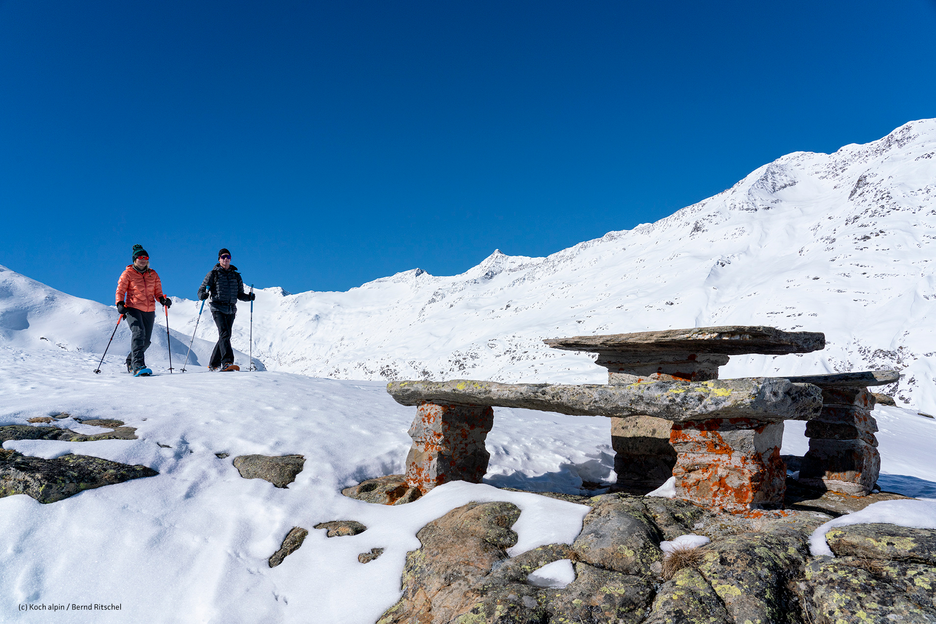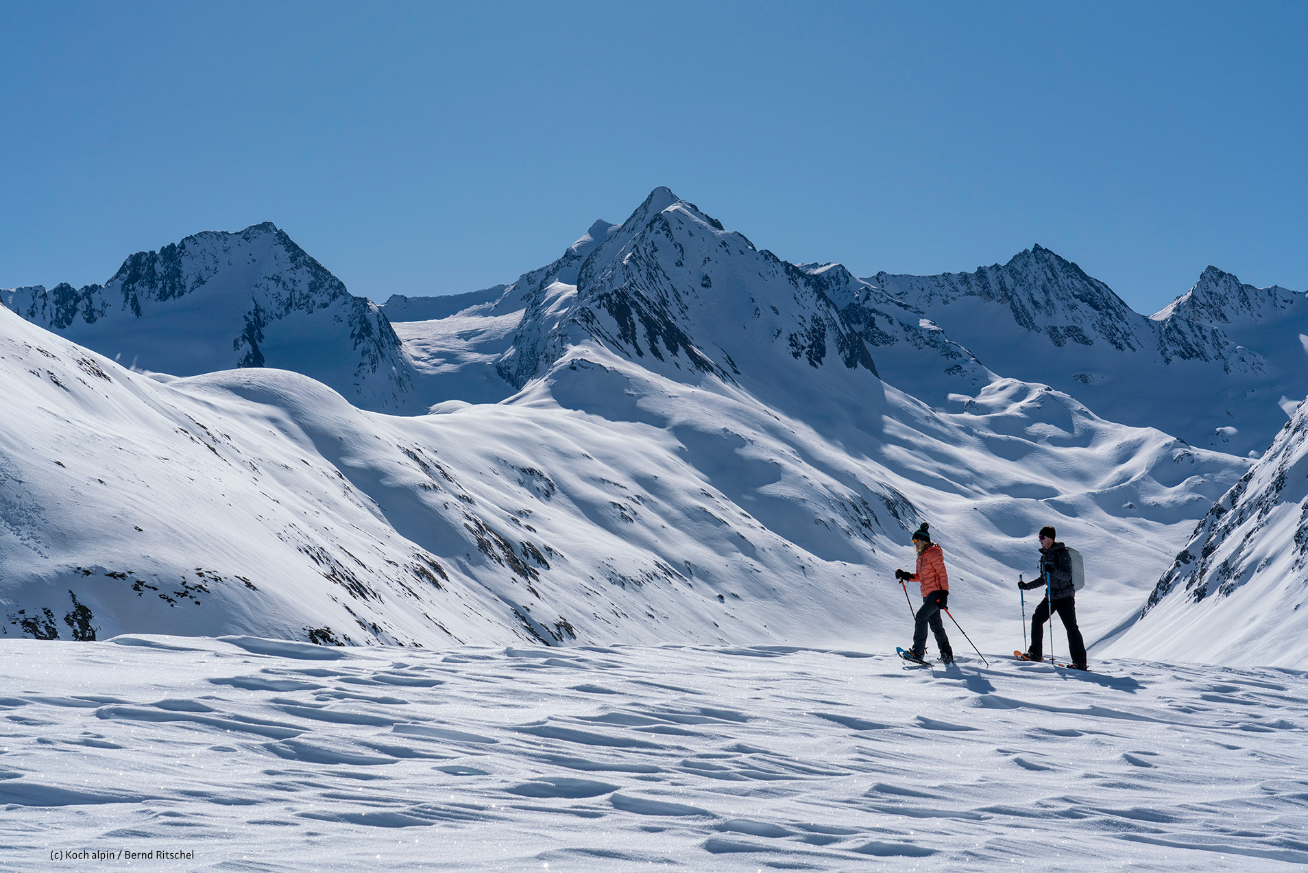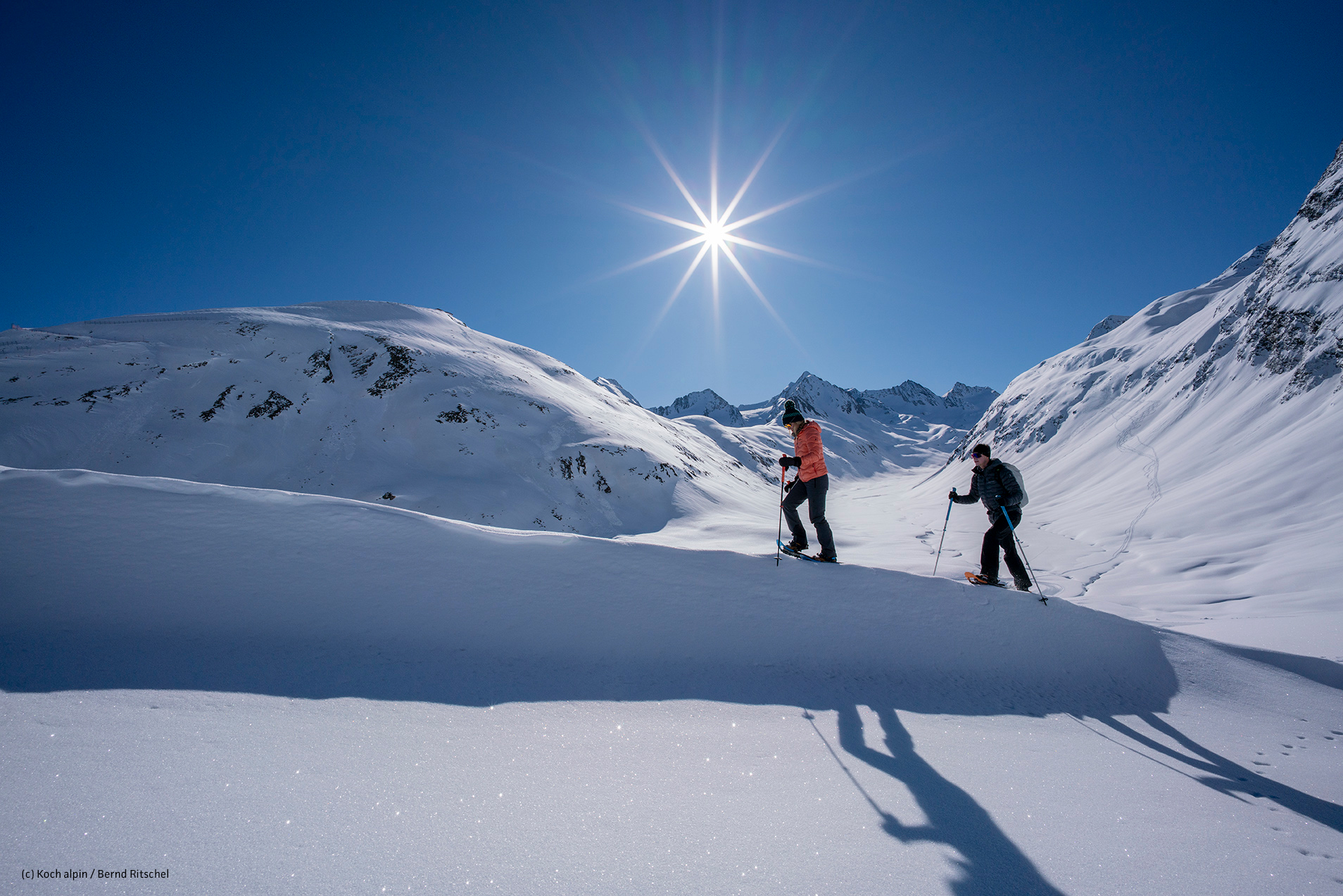 Wer gehen kann, kann auch Schneeschuhwandern“, lautet eine alte Bergführerweisheit. Soll heißen, der Umstieg vom Wandern bzw. Bergsteigen und Skitourengehen ist leicht. Größer ist die mentale Schwelle, als passionierter Skitourengeher zu Schneeschuhen zu greifen, weil Schneeschuhtouren ja bekanntlich keinen (Tiefschnee-)Abfahrtsspaß bieten. Trotzdem sollte man sich einen Ruck geben und es einfach einmal professionell vorbereitet ausprobieren!